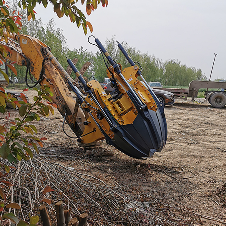◆挖树机需装载到装载机上,只需通过快速连结设备将液压系统联接起来即可。油管和集成控制阀安装在框架的顶部,液压软管早就装好,因此◆刀门具备平稳的门锁系统,有力的锁钉(钩子)稳固地锁定了整个框架,并且安全按钮可以以防挖掘机在异常状况下支配挖掘