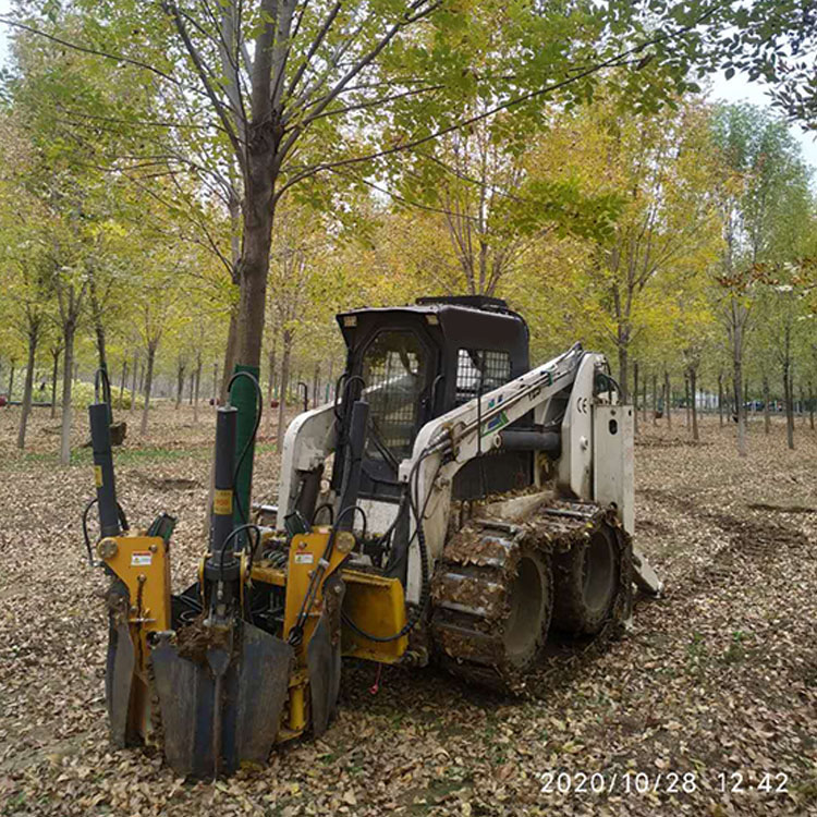 挖树机由树木挖掘机的头部和挖掘机或橇式装载机使用。